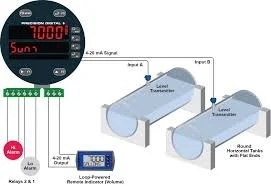 In this application, a level sensor is measuring the height in the round horizontal tank and the ProVu is converting that signal to volume using the RHT function. All the user has to do is input the diameter and length of the tank and the meter converts the signal to volume.